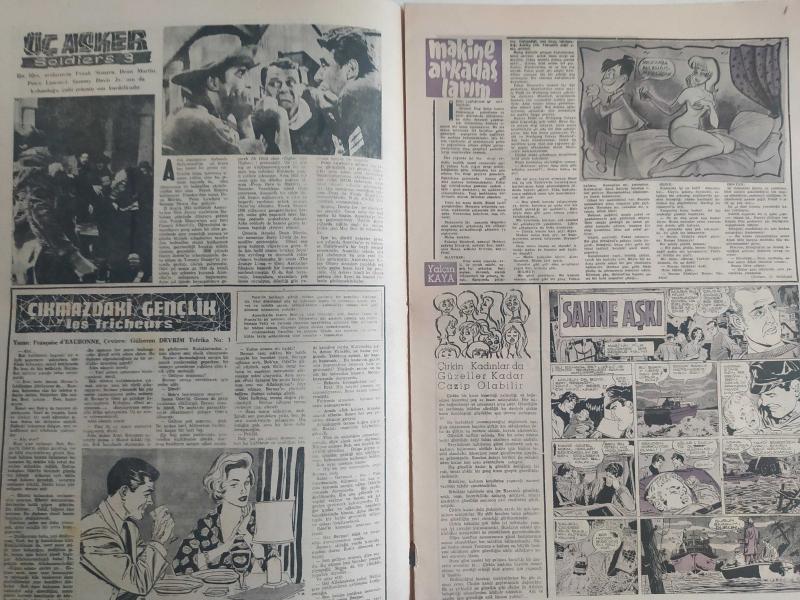 Pazar Haftalık Aktüalite Sinema Tiyatro Müzik ve Magazin Dergisi - 3 Eylül 1961 - Sayı:258 - Kadınlar Ponsiyonu çizgi romanı - Şundan bundan Piknik 2 - Falınız - Kibar Hırsız Çizgi Romanı - Hop dedik inecek var - Şakır Balkı - Üç Asker - Çıkmazdaki Gençlik - Makine arkadaşlarım - Çirkin Kadınlar da Güzeller Kadar Cazip Olabilir - Sahne Aşkı çizgi romanı - Şahane Suvare Oturaklı Vükela Meclisi - Gümüşlerimizi nasıl temizliyelim? - Zeynep Berk - Yeryüzünde Cennet - Hepsi onu taklit ediyorlar - Dünyanın en garip müzesi - Çin oyunu - Biliyor musunuz? - Kerim Han aşkta hüsrana uğradı - Şeytanın Elçisi - Yenilmez Yumruk Çizgi Romanı - İlk İhanet - Kalbin Köşesinden - Seyyar Evde Randevu - Banyodaki Kadın - Genç Kız Kalbi ve Uçan Adam Çizgi Romanı - Beyaz Perdede ne var ne yok - Makine arkadaşlarım - Hop dedik inecek var - Yeryüzünde Cennet - Perde ve Sahne - Perde Arkası - Muazzez Tahsin ve Berkant fotoğraf ve haberi - Tam Takım Dergi adlı eser, Kitap > Süreli Yayınlar > Dergiler > Magazin, Moda kategorisinde İkinci El olarak satıştadır.