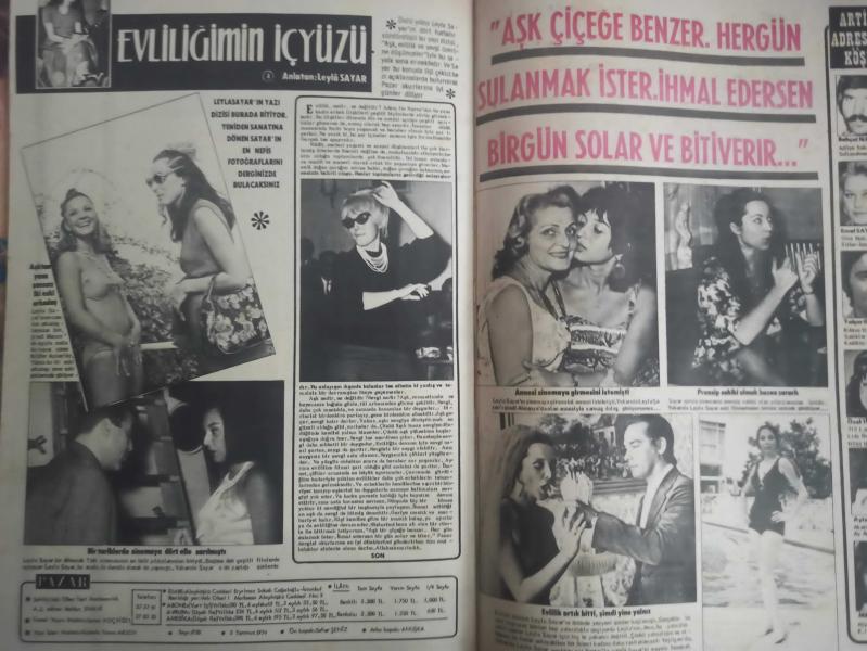 Pazar Haftalık Aktüalite Sinema Tiyatro Müzik ve Magazin Dergisi - 5 Temmuz 1974 - Sayı:928 - Seher Şeniz - Anuşka - Sertaç Karan - Behçet Nacar - Gülgün Erdem - Özden Yüce - Danyal Topatan - Cevat Kurtuluş - Zeki Tüney - İhsan Gedik - Oktar Durukan - Zeyno Çilem evli sevgilisinden ayrıldı - Aziz Sarıkaya - ''Anneannelerin en güzeli benim, aksini söyleyen beri gelsin'' - Sevim Tuna - Liz Taylor - Sheila - Müşerref Tezcan Dev Posteri - Leyla Sayar - Liz Taylor ''Aşklarım ve Kocalarım'' - Şevket Kazan, Kartal'da ''Din Görevlileri Derneği Başkanı'' iken - Şevkat Kazan'ın basın sansürü hakkında halk ne diyor? - Recai G. Okandan - Ümit Utku - Nahit Emiroğlu - Yılmaz Savaşçı - Fuat Büte - Cengiz Tuncer - Artin Kuran - Rebii Şenkartal - Feyzi Tuna - Piraye Uzun - Söylentiler üzerine Piraye Uzun konuştu: ''Ben hiç kimsenin yuvasını yıkmadım'' diyor - Evliliğimin içyüzü Leyla Sayar ve eşi Sertaç Behçet Nacar - Emel Sayın - Yalçın Gülhan - Özel Türkbaş - Ayten Alpman - Posterli Tam Takım Dergi Yıpranma, sararmalar, kupon kesiği ve yırtılmalar zamana bağlı olarak görülebilir