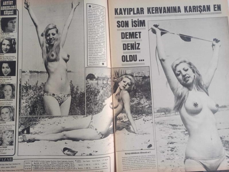 Pazar Haftalık Aktüalite Sinema Tiyatro Müzik ve Magazin Dergisi - 6 Eylül 1974 - Sayı:937 - Feri Cansel - Figen Han - Meral Orhonsay bakalım daha ne kadar dayanacak? - Tarık Akan - Deniz - Hülya Darcan - Meral Küçükerol - Sevgi Can - Semra Yıldız - Kayıplar kervanına karışan en son isim Demet Deniz oldu - Gönül Tansel Almanya'da iyice tombullaştı - Fatma Girik - Ceyhan Cem - Gamze Öz Dev Posteri - Sevda Ferdağ - Özden Yüce eskiden muz gibi soyunurdu - Behçet Nacar - Zeki Müren'den çeşitli portreler - Asil Dansöz sayısı artıyor - Prenses Fatoş - Justin İgnizio, Mr. Sotiri - Prenses Banu'dan sonra şimdi de Prenses Fatoş fotoğraf ve haberi - Posterli Tam Takım Dergi Yıpranma, sararmalar, kupon kesiği ve yırtılmalar zamana bağlı olarak görülebilir
