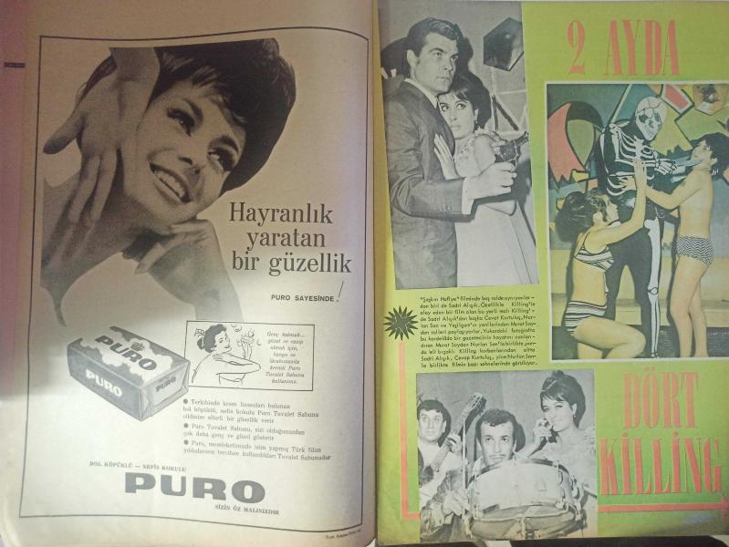 Pazar Haftalık Aktüalite Sinema Tiyatro Müzik ve Magazin Dergisi - 7 Ekim 1967 - Türkan Şoray - İrfan Ünal - Zeki Müren - Pervin Par - Cevat Kurtuluş - Sadri Alışık - Murat Soydan - Nurlan San - Natuk Baytan - Hüseyin Zan - Figen Han - Sema Özcan - Cüneyt Arkın - Ediz Hun - Ekrem Bora - Zeynep Berk - Ülkü Erakalın - Selda Alkor - Metin Ersoy - İzzet Günay - Figen Han - Suna Keskin - Turan Aksoy - Sevtap Deniz - Hayri Caner - Gönül Yazar fotoğraf ve haberi - Dört Killing Haberi - Bu Yıl Tiyatro Yok Haberi - Bir Sette Üç Ayrı Film Haberi - Puro Tuvalet Sabunu Reklamı - Doctor Renaud Şampuan Reklamı - Tam Takım Dergi Yıpranma, sararmalar, kupon kesiği ve yırtılmalar zamana bağlı olarak görülebilir