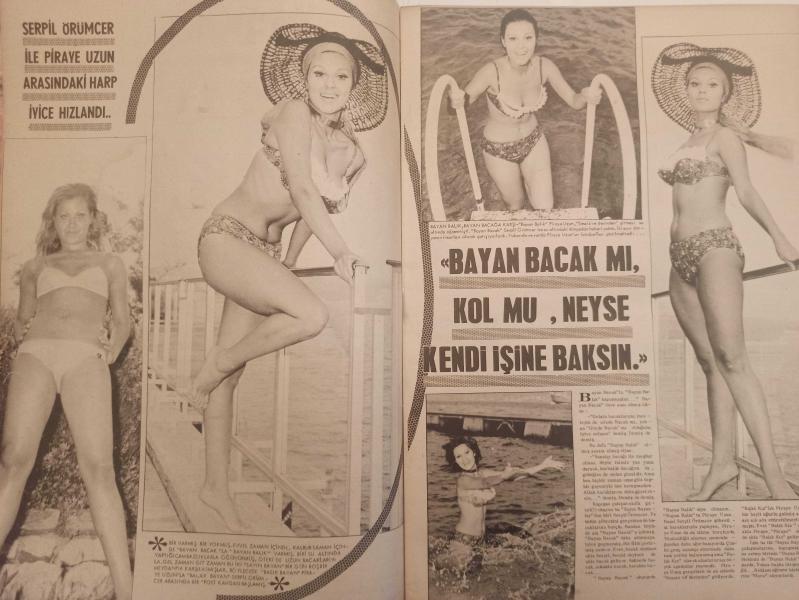 Pazar Haftalık Aktüalite Sinema Tiyatro Müzik ve Magazin Dergisi - 9 Ekim 1970 - Sayı:733 - Piraye Uzun - Leyla Sayar yuvaya döndü - Altan Günbay - Ediz Hun - Serpil Örümcer ile Piraye Uzun arasındaki harp iyice hızlandı - Nurlan San'ın kardeşi şantöz Nuray San'da Yeşilçam'a girdi - Mine Mutlu şakır şakır göbek attı - ''Carroll Baker'' - Sevgi Can, ''1970 kışında sizlere büyük sürprizler var'' diyor - Yılmaz Güney - Nejat Saydam - Kartal Tibet - OMO Deterjan Reklamı - Sadosan Boya Reklamı - Yeşilçam'ın yeni Tarkan'ı: Nejat Özbek - Zeynep Aksu - Menderes Utku - Turgut Demirağ - Yeşilçam'da çocuk yıldız salgını - Rüya Gümüşata, Parla Şenol - Funda Gürçen - Billur Kalkavan - Erol Taş - John Moulder Brown - Yeşilçam'ın Havva Ana'sı görev başında - Figen Han gibi kimse soyunamaz! - Esen Püsküllü - Fikret Hakan - Fatma Girik - Figen Say - Filiz Akın - Feridun Çölgeçen - Fatma Karanfil fotoğraf ve haberi - Tam Takım Dergi Yıpranma, sararmalar, kupon kesiği ve yırtılmalar zamana bağlı olarak görülebilir