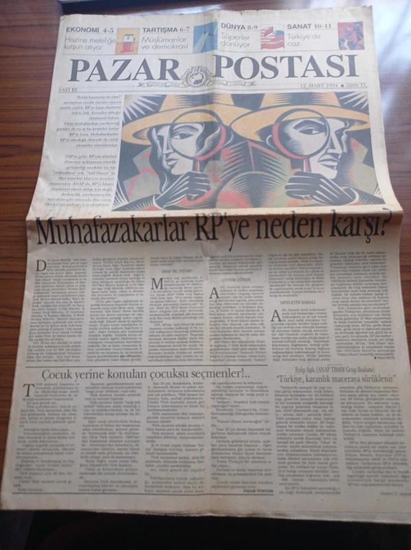 Pazar Postası Gazetesi - 12 Mart 1994 - Fikret Bila - Sami Kohen - Çirkin Ama Çekici Gerard Depardieu - Kazakistan ABD Gizli Petrol Yolu Haritası - Eyüp Aşık ANAP TBMM Grup Başkanı - Zülfü Livaneli - İlhan Kesici - Muhafazakarlar Neden Refah Partisi'ne Karşı - Hazine Meteliğe Kurşun Atıyor - Müslümanlar Ve Demokrasi - Türkiye'de Caz adlı eser Türkçe dilindedir.