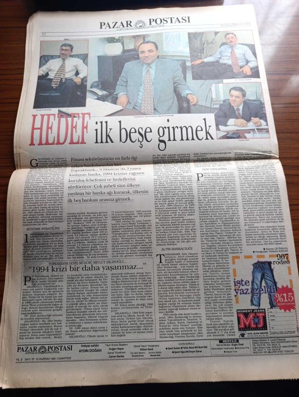 Pazar Postası Gazetesi - Turkish Newspaper - 10 Haziran 1995 - Sayı 77 - Çiller yine rüzgarı arkasına aldı yazan Cengiz Kuşçuoğlu - Cumhuriyet ve militarizm yazan Ömer Servet - Yahudi düşmanlığı yazan Murat Belge - siyaset üstüne söylentiler yazan Canan Barlas - Kürt sorunu - Türkiye'nin batılılaşma ve demokratikleşme açmazı yazan Tülay Özüerman - BankEkspres bankacılığın Vakko'su yazan Güler Kömürcü - silahlar susmuyor Mafya açık oynuyor görüş Murat Çulcu - Aydın Menderes ve Fethullah Gülen hoca - Doğu sorununu anlamak yazan Doğu Ergil - Uzakdoğu mucizesinin sırrı yazan Sami Kohen - Ne olmuş bu Kızılordu'ya böyle yazan Dinçer Güner - üç kağıtçıların egemenliği Kleptokrasi yazan Dinçer Güner - fotoğrafçı İbrahim Tuna'ın ilginç bir tekniği var - devleti arayanlarla devletten yardım isteyenler yazan Burçak Evren - bizde olmaz demeyin uyuşturucu Türkiye'nin de kapısını çalıyor yazan Naki Özkan - dil oğlanları ve tercümanlar - Toprakbank genel müdürü Mevlüt Aslanoğlu 1994 krizi, Aydın Doğan tarafından kaleme alınmıştır. Pazar Postası Gazetesi - Turkish Newspaper - 10 Haziran 1995 - Sayı 77 - Çiller yine rüzgarı arkasına aldı yazan Cengiz Kuşçuoğlu - Cumhuriyet ve militarizm yazan Ömer Servet - Yahudi düşmanlığı yazan Murat Belge - siyaset üstüne söylentiler yazan Canan Barlas - Kürt sorunu - Türkiye'nin batılılaşma ve demokratikleşme açmazı yazan Tülay Özüerman - BankEkspres bankacılığın Vakko'su yazan Güler Kömürcü - silahlar susmuyor Mafya açık oynuyor görüş Murat Çulcu - Aydın Menderes ve Fethullah Gülen hoca - Doğu sorununu anlamak yazan Doğu Ergil - Uzakdoğu mucizesinin sırrı yazan Sami Kohen - Ne olmuş bu Kızılordu'ya böyle yazan Dinçer Güner - üç kağıtçıların egemenliği Kleptokrasi yazan Dinçer Güner - fotoğrafçı İbrahim Tuna'ın ilginç bir tekniği var - devleti arayanlarla devletten yardım isteyenler yazan Burçak Evren - bizde olmaz demeyin uyuşturucu Türkiye'nin de kapısını çalıyor yazan Naki Özkan - dil oğlanları ve tercümanlar - Toprakbank genel müdürü Mevlüt Aslanoğlu 1994 krizi adlı eser Türkçe dilindedir.