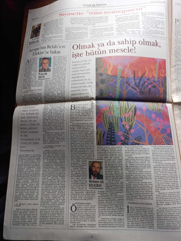 Pazar Postası Gazetesi - Turkish Newspaper - 11 Ağustos 1996 - Sayı 138 - ANAP'ta zor dönemeç yazan Mete Belovacıklı - Avrupa'nın Refah Partisi'ne ve Türkiye'ye bakışı yazan Faruk Şen - Refah Sorunsalı yazan Doğu Ergil - Sevr'de çok hukuk yazan Taha Akyol - Kamil Koç Prestij'i seçti - Çetinkaya'nın hedefi 250 mağaza - Kürt sorununu Paris şartı çözer yazan Ömer Servet - Yeni Sol ve SHP üzerine yazan Ercan Karakaş - ANAP Genel Merkezi KİT'leşti yazan Naki Özkan - terör kabuk değiştiriyor yazan Sami Kohen - Fransa eski cumhurbaşkanı Mitterand'ın erotik hikayeleri - Hitler'in zafer siparişi satıldı - Ar olimpiyata değil kar olimpiyatı yazan Dinçer Güner - Hişt Kültür Sanat dergisi yazan Ahmet Ümit - haftanın filmleri yazan Ahmet Mithat - borsada seçici olma zamanı - İMKB kapanış - En iyi 10 Hisse - Cumhuriyet döneminde Türk sanat müziğinin duayenleri - Münir Nurettin Selçuk fotoğraf - Selahattin Pınar fotoğraf - Osman Nihat Akın Yahya Kemal Beyatlı'nın şiirleri üzerine beste yaptı, Aydın Doğan tarafından kaleme alınmıştır. Pazar Postası Gazetesi - Turkish Newspaper - 11 Ağustos 1996 - Sayı 138 - ANAP'ta zor dönemeç yazan Mete Belovacıklı - Avrupa'nın Refah Partisi'ne ve Türkiye'ye bakışı yazan Faruk Şen - Refah Sorunsalı yazan Doğu Ergil - Sevr'de çok hukuk yazan Taha Akyol - Kamil Koç Prestij'i seçti - Çetinkaya'nın hedefi 250 mağaza - Kürt sorununu Paris şartı çözer yazan Ömer Servet - Yeni Sol ve SHP üzerine yazan Ercan Karakaş - ANAP Genel Merkezi KİT'leşti yazan Naki Özkan - terör kabuk değiştiriyor yazan Sami Kohen - Fransa eski cumhurbaşkanı Mitterand'ın erotik hikayeleri - Hitler'in zafer siparişi satıldı - Ar olimpiyata değil kar olimpiyatı yazan Dinçer Güner - Hişt Kültür Sanat dergisi yazan Ahmet Ümit - haftanın filmleri yazan Ahmet Mithat - borsada seçici olma zamanı - İMKB kapanış - En iyi 10 Hisse - Cumhuriyet döneminde Türk sanat müziğinin duayenleri - Münir Nurettin Selçuk fotoğraf - Selahattin Pınar fotoğraf - Osman Nihat Akın Yahya Kemal Beyatlı'nın şiirleri üzerine beste yaptı adlı eser Türkçe dilindedir.