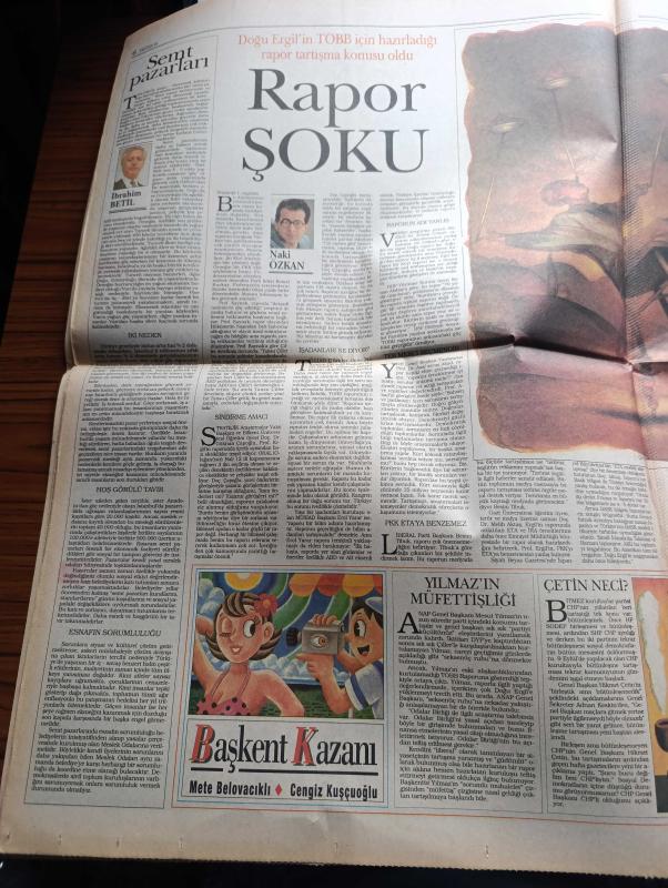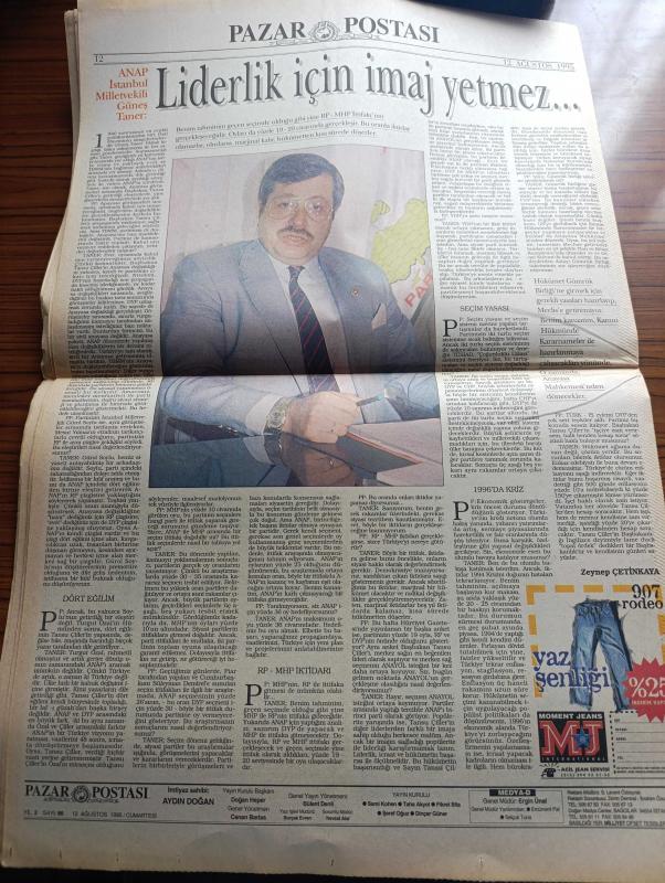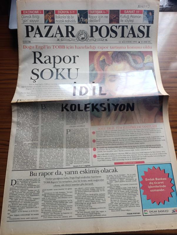 Pazar Postası Gazetesi - Turkish Newspaper - 12 Ağustos 1995 - Sayı 86 - Doğu Ergil'in TOBB için hazırladığı rapor tartışma konusu oldu - Doğu Ergil tüm eleştirileri yanıtladı - gümrük birliğine girerken müdür beyler dönemi bitti yazan Canan Barlas - güvensizlik yazan Murat Belge - Le Monde liberaller bunu çoktandır söylüyordu yazan Ömer Servet - 68 kuşağı bir tecrübedir yazan Taha Akyol - Pamukbank'ın yeni kaptanı Orhan Emirdağ - dikkat Toyota Rav4 geldi - Tansu Çiller'den İlyas Aktaş'a telefon - İspanya ve BASK modeli - PKK ETA'ya benzemez - insanlık dramı göç yazan Sami Kohen - balkanlarda bir mozaik mahvoldu yazan Dinçer Güner - genç yönetmen Kutluğ Ataman hapsedilmiş bir kitle gençlik röportaj Burçak Evren - Eugenio Barba İstanbul'da - uluslararası Leyla Gencer şan yarışması fotoğraf - ANAP İstanbul milletvekili Güneş Taner liderlik için imaj yetmez yazan Zeynep Çetinkaya, Aydın Doğan tarafından kaleme alınmıştır. Pazar Postası Gazetesi - Turkish Newspaper - 12 Ağustos 1995 - Sayı 86 - Doğu Ergil'in TOBB için hazırladığı rapor tartışma konusu oldu - Doğu Ergil tüm eleştirileri yanıtladı - gümrük birliğine girerken müdür beyler dönemi bitti yazan Canan Barlas - güvensizlik yazan Murat Belge - Le Monde liberaller bunu çoktandır söylüyordu yazan Ömer Servet - 68 kuşağı bir tecrübedir yazan Taha Akyol - Pamukbank'ın yeni kaptanı Orhan Emirdağ - dikkat Toyota Rav4 geldi - Tansu Çiller'den İlyas Aktaş'a telefon - İspanya ve BASK modeli - PKK ETA'ya benzemez - insanlık dramı göç yazan Sami Kohen - balkanlarda bir mozaik mahvoldu yazan Dinçer Güner - genç yönetmen Kutluğ Ataman hapsedilmiş bir kitle gençlik röportaj Burçak Evren - Eugenio Barba İstanbul'da - uluslararası Leyla Gencer şan yarışması fotoğraf - ANAP İstanbul milletvekili Güneş Taner liderlik için imaj yetmez yazan Zeynep Çetinkaya adlı eser Türkçe dilindedir.