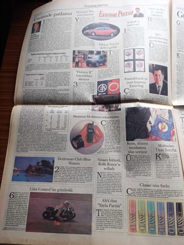 Pazar Postası Gazetesi Sayfa Boyutu : 42*58 cm Sayfa Sayısı: 12 Yıpranma, sararmalar, kupon kesiği ve yırtılmalar zamana bağlı olarak görülebilir Not: Tam takım gazetedir