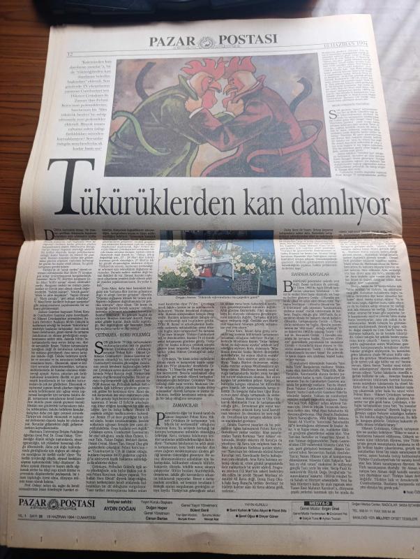 Pazar Postası Gazetesi - Turkish Newspaper - 18 Haziran 1994 - Sayı 26 - devletçi lobi bastırıyor özelleştirmeye üçüncü yol aranıyor yazan Mete Belovacıklı - liberal dünyayı yakalamak isterken yazan Canan Barlas - ilk özelleştirmeci bürokrat Mithat Paşa yazan Hikmet Özdemir - Ulus Devlet'i bitiren 7 sebep - Bilim için altyapı yazan Taha Akyol - İş Bankası şaşırttı - Kara Eylül yorumu yazan Şeref Oğuz - birleşme mi yenileşme mi Qua Vadis Sol yazan Nihal Mete - DSP genel başkanı Bülent Ecevit sol zayıflamayacak - SHP Genel Başkanı Murat Karayalçın sol umuttur - yerli ve tutarlı sol yazan Ertuğrul Günay - Minör suçlar majör suçlar yazan Mehmet Ali Kılıçbay - Avrupa ne yöne gidiyor yazan Sami Kohen - Rus mafyası nükleer oynuyor yazan Dinçer Güner - Hollywood'un Spielberg'e şapka çıkarttığı film Schindlers List fotoğraf - yağmalanan tarih yazan Burçak Evren - 1. İstanbul caz festivali şöleni - Bıtty Mac Lean - 1. Uluslararası İstanbul Caz festivali afişi - Duygu Asena adlı eser, Kitap > Süreli Yayınlar > Gazeteler > Türkiye > Genel > Günlük kategorisinde İkinci El olarak satıştadır.