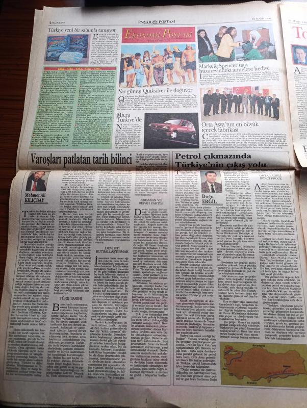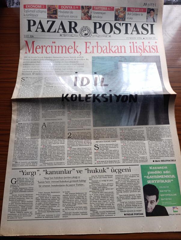 Pazar Postası Gazetesi - Turkish Newspaper - 19 Mayıs 1996 - Mercümek Erbakan İlişkisi - Yargı kanunlar ve hukuk üçgeni - Çok hukuk tartışması yazan Taha Akyol - Bir Üniversite örneği Murat Belge - Türkiye iş Bankası - Orta Asya'nın En büyük içecek Fabrikası - Siyasal kriz ekonomik kriz Ömer Servet - Farklı malzemelerin birleştirilmesi müziksiz olmaz Tınaz Titiz - 19 Mayıs'ın neresindeyiz yazan Cahit Tanyol - Seçim neyi halleder yazan Sami Kohen - kadınsız demokrasi olmaz Dinçer Güner - Saraydan Gazinoya Sevda İle dillendi bu alaturka - entelektüeller bond'u keşfetti - Borsaya siyasi çelme - İMKB - en iyi 10 hisse - En kötü 10 hisse - Kardeş Erbakan'ın Faksı - Refah Partisinden Ödeme Emri, Aydın Doğan tarafından kaleme alınmıştır. Pazar Postası Gazetesi - Turkish Newspaper - 19 Mayıs 1996 - Mercümek Erbakan İlişkisi - Yargı kanunlar ve hukuk üçgeni - Çok hukuk tartışması yazan Taha Akyol - Bir Üniversite örneği Murat Belge - Türkiye iş Bankası - Orta Asya'nın En büyük içecek Fabrikası - Siyasal kriz ekonomik kriz Ömer Servet - Farklı malzemelerin birleştirilmesi müziksiz olmaz Tınaz Titiz - 19 Mayıs'ın neresindeyiz yazan Cahit Tanyol - Seçim neyi halleder yazan Sami Kohen - kadınsız demokrasi olmaz Dinçer Güner - Saraydan Gazinoya Sevda İle dillendi bu alaturka - entelektüeller bond'u keşfetti - Borsaya siyasi çelme - İMKB - en iyi 10 hisse - En kötü 10 hisse - Kardeş Erbakan'ın Faksı - Refah Partisinden Ödeme Emri adlı eser Türkçe dilindedir.