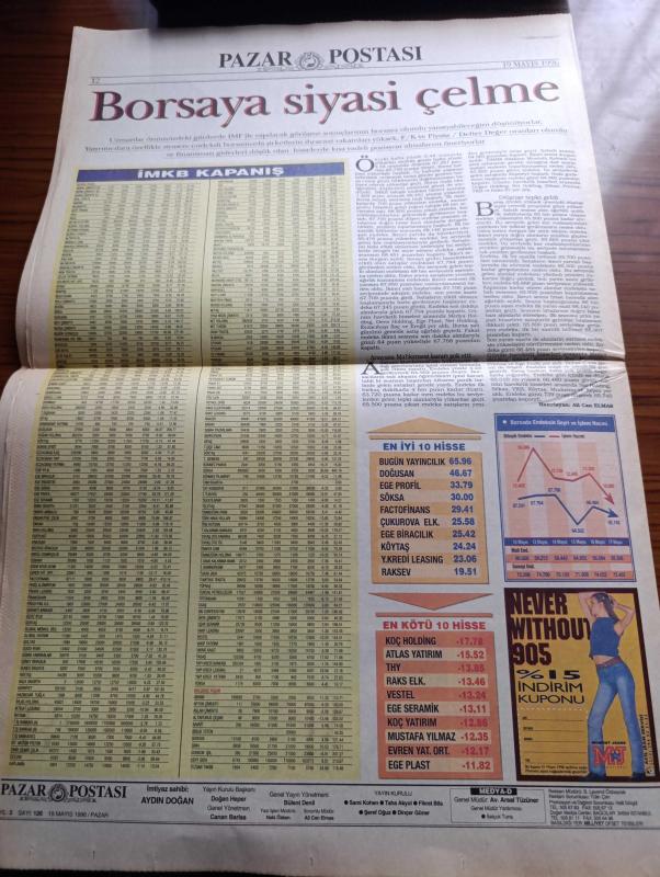 Pazar Postası Gazetesi - Turkish Newspaper - 19 Mayıs 1996 - Mercümek Erbakan İlişkisi - Yargı kanunlar ve hukuk üçgeni - Çok hukuk tartışması yazan Taha Akyol - Bir Üniversite örneği Murat Belge - Türkiye iş Bankası - Orta Asya'nın En büyük içecek Fabrikası - Siyasal kriz ekonomik kriz Ömer Servet - Farklı malzemelerin birleştirilmesi müziksiz olmaz Tınaz Titiz - 19 Mayıs'ın neresindeyiz yazan Cahit Tanyol - Seçim neyi halleder yazan Sami Kohen - kadınsız demokrasi olmaz Dinçer Güner - Saraydan Gazinoya Sevda İle dillendi bu alaturka - entelektüeller bond'u keşfetti - Borsaya siyasi çelme - İMKB - en iyi 10 hisse - En kötü 10 hisse - Kardeş Erbakan'ın Faksı - Refah Partisinden Ödeme Emri adlı eser, Kitap > Süreli Yayınlar > Gazeteler > Türkiye > Genel > Günlük kategorisinde İkinci El olarak satıştadır.