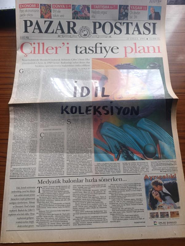 Pazar Postası Gazetesi - Turkish Newspaper - 23 Eylül 1995 - Sayı 92 - Çiller'i tasfiye planı yazan Cengiz Kuşçuoğlu - sosyalizmin geleceği toslaması yazan Canan Barlas - Fransa ne yapıyor yazan Murat Belge - KİT sendikacılığı yazan Taha Akyol - seçim öncesi koalisyon yazan İbrahim Betil - Hollanda kraliyet hava yolları Türkiye'de yeni ofisinde - LCW'ye ait ilk mağaza Şirinevlerde açıldı fotoğraf - metro market İzmir'de - diyalog sorunu yazan Aydın Ayaydın - Beymen status 10 yaşında - medyada yargısız infaz yazan Naki Özkan - Murat Karayalçın'a bin yıllık ceza - sorunlu komşular çemberi yazan Sami Kohen - BM ele talkın verir yazan Dinçer Güner - Meg Ryan aslında bizden biri fotoğraf - Atıf Yılmaz yazan Burçak Evren - Çatalhöyük'te yazılar yeniden başladı - 3M pratik yaşamın diğer adı - Yeşil kundura yönetim kurulu başkanı Mustafa Yeşil ayakkabıyı seviyorum Fotoğrafı - aldatan erkekler - CIA'de eskilerin kavgası - Alarko doğalgaz - Bulgar meclisi meteliksiz - Esat kıratlıoğlu, Aydın Doğan tarafından kaleme alınmıştır. Pazar Postası Gazetesi - Turkish Newspaper - 23 Eylül 1995 - Sayı 92 - Çiller'i tasfiye planı yazan Cengiz Kuşçuoğlu - sosyalizmin geleceği toslaması yazan Canan Barlas - Fransa ne yapıyor yazan Murat Belge - KİT sendikacılığı yazan Taha Akyol - seçim öncesi koalisyon yazan İbrahim Betil - Hollanda kraliyet hava yolları Türkiye'de yeni ofisinde - LCW'ye ait ilk mağaza Şirinevlerde açıldı fotoğraf - metro market İzmir'de - diyalog sorunu yazan Aydın Ayaydın - Beymen status 10 yaşında - medyada yargısız infaz yazan Naki Özkan - Murat Karayalçın'a bin yıllık ceza - sorunlu komşular çemberi yazan Sami Kohen - BM ele talkın verir yazan Dinçer Güner - Meg Ryan aslında bizden biri fotoğraf - Atıf Yılmaz yazan Burçak Evren - Çatalhöyük'te yazılar yeniden başladı - 3M pratik yaşamın diğer adı - Yeşil kundura yönetim kurulu başkanı Mustafa Yeşil ayakkabıyı seviyorum Fotoğrafı - aldatan erkekler - CIA'de eskilerin kavgası - Alarko doğalgaz - Bulgar meclisi meteliksiz - Esat kıratlıoğlu adlı eser Türkçe dilindedir.