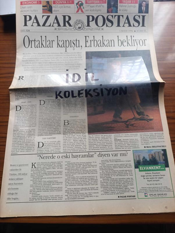 Pazar Postası Gazetesi - Turkish Newspaper - 5 Mayıs 1996 - Sayı 124 - Ortaklar kapıştı Erbakan bekliyor yazan Mete Belovacıklı - Ulus kavramı yeniden şekillenirken yazan Mehmet Ali Kılıçbay - uzlaşmalar yazan Murat Belge - değişim ve ahlak üzerine düşünceler yazan Canan Barlas - Cumhuriyet laiklik demokrasi ve çocukları yazan Ömer Servet - siyasi lider olarak Özal Taha Akyol - Kinetix İle Yere Sağlam Basın - Avrupa Müzik Top 10 - DYP'leşen ANAP'ta yeni kadrolaşma Yazan Naki Özkan - erken seçim olasılığı - sansasyon gazeteciliği yüz yaşında - 60'lık Pavarotti'nin sevgilisi 26 yaşında - AIDS için kırmızı alarm - uyuşturucu AIDS'in binek taşı - Tuğçe San'ın Avrupa çıkartması - İstanbul kanatlarımın altında filmi - bütün eserleri ile Füruzan - Zeytinoğlu motorlu taşıtlar A.Ş. Genel Müdürü Mehmet Zeytinoğlu Alfa müşterisi özeldir - Yapı Kredi bankası'nın hazırladığı Yapı Kredi Vedat Nedim Tör müzesi'nde sergilediği gramofon ve taş plak sergisi büyük ilgi gördü - İMKB kapanış adlı eser, Kitap > Süreli Yayınlar > Gazeteler > Türkiye > Genel > Günlük kategorisinde İkinci El olarak satıştadır.