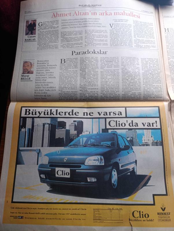 Pazar Postası Gazetesi - Turkish Newspaper - 7 Temmuz 1996 - Sayı 133 - Mesut Yılmaz zor durumda yazan Cengiz Kuşçuoğlu - Necmettin Erbakan'ın kurduğu koalisyon hükümeti - Ahmet Altan'ın arka mahallesi yazan Canan Barlas - paradokslar yazan Murat Belge - aile hukuku kavgası yazan Taha Akyol - kapalılık yozlaşma ahlaksızlaşma şiddet yazan Doğu Ergil - Renault Clio - Çalık grubunun Malatya sevdası - THY Swissair İşbirliği - borsada panik yapmayan kazanacak - RefahYol ekonomide ne yapabilir yazan Şeref Oğuz - kara para uyuşturucu ve siyaset yazan Ömer Servet - koalisyonda Refah Refah'ta koalisyonlar yazan Naki Özkan - Başkent kazanı yazan Mete Belovacıklı ve Cengiz Kuşçuoğlu - Son 20 yıldır dünyada ABD'ye yönelik saldırılar haritası - dünyada İslami hareketler ve Refah Partisi'nin farkı yazan Mustafa Özcan - en laik başbakan yazan Mehmet Ali Kılıçbay - 3. Uluslararası caz festivali başladı - Kevyn Lettau Unity fotoğraf - BMW güney sahillerinde - Feyyaz Berker'den Halis Komili'ye TÜSİAD adlı eser, Kitap > Süreli Yayınlar > Gazeteler > Türkiye > Genel > Günlük kategorisinde İkinci El olarak satıştadır.
