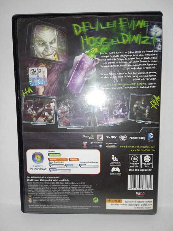 Pc Oyun Batman arkham asylum Game of the year edition. yılın oyunu versiyonu. Orijinal, Kitapçık mevcut. Disk 10 üzerinden 8,5 koleksiyonluk başlıklı antika/koleksiyon objesinin menşei belirtilmemiştir. Objenin ait olduğu dönem bilinmeketedir.