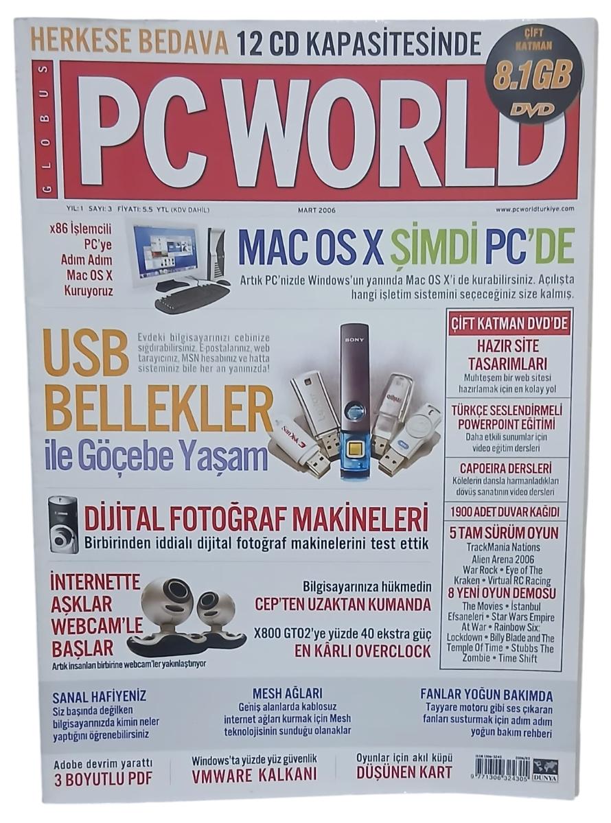 Pc World Bilgisayar Dergisi Sayı 3 / Mart 2006 ... Temiz durumda.Ekleri yoktur. *Usb Bellekler İle Göçebe Yaşam *Dijital Fotoğraflar Makineleri *İnternette Aşklar Webcamle Başlar