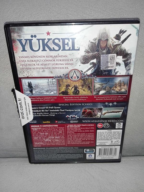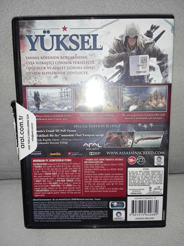Pc oyun Assassins Assassin's creed 3 special edition. Orijinal. Kitapçık mevcut. 2 disk. Diskler 10 üzerinden 9.5 iyi durumda koleksiyonluk, en son 6 gün önce güncellenmiştir.