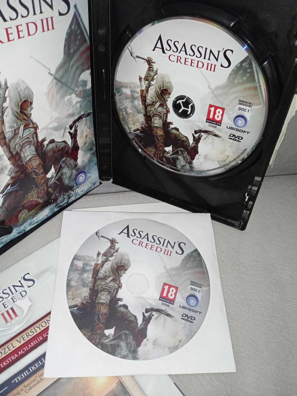 Pc oyun Assassins Assassin's creed 3 special edition. Orijinal. Kitapçık mevcut. 2 disk. Diskler 10 üzerinden 9.5 iyi durumda koleksiyonluk