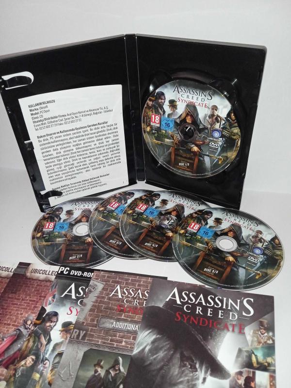 Pc oyun Assassin's Creed Syndicate Special Edition. Orijinal. 5 disk. Diskler 10 üzerinden 9.5 iyi durumda. Kodlar kullanıldı. Koleksiyonluk
