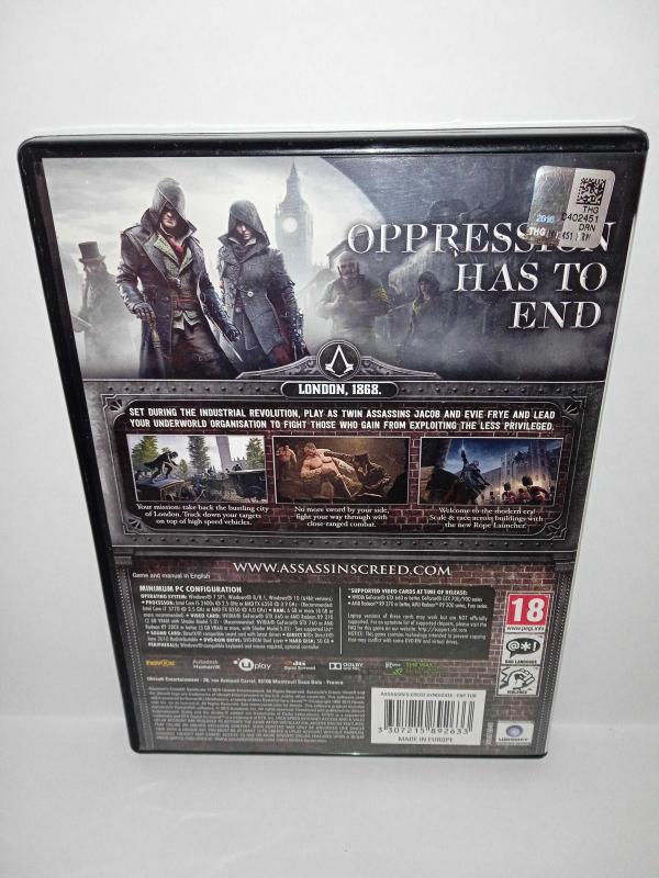 Pc oyun Assassin's Creed Syndicate Special Edition. Orijinal. 5 disk. Diskler 10 üzerinden 9.5 iyi durumda. Kodlar kullanıldı. Koleksiyonluk başlıklı antika/koleksiyon objesinin menşei belirtilmemiştir. Objenin ait olduğu dönem bilinmeketedir.