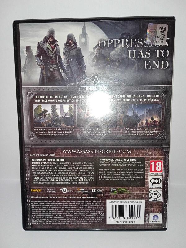 Pc oyun Assassin's Creed Syndicate Special Edition. Orijinal. 5 disk. Diskler 10 üzerinden 9.5 iyi durumda. Kodlar kullanıldı. Koleksiyonluk, bir ay önce kitantik’te satışa sunulmuştur.
