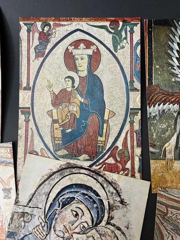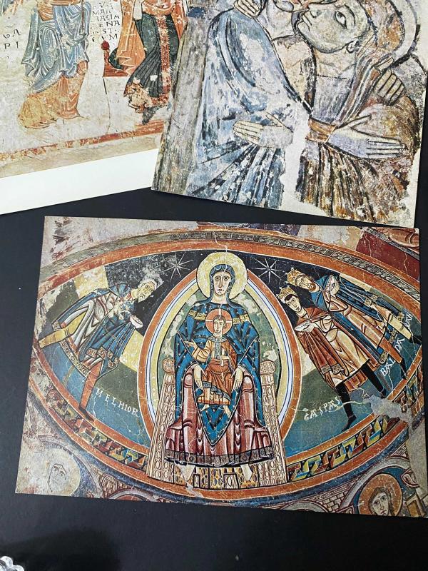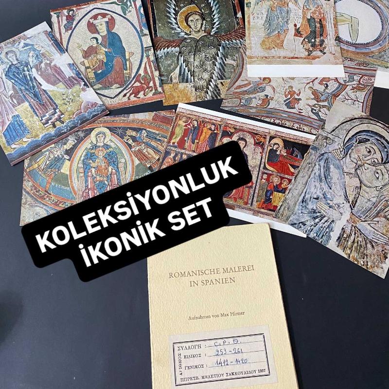 NADİR KOLEKSİYONLUK İKONİK KARTPOSTAL SETİ… . İstiklal Caddesi üzerindeki Şişmanoğlu Konağı olarak bilinen tarihi binadaki koleksiyonluk eserleriyle ünlü “Peder Sakulidis Kütüphanesi” etiketinin yer aldığı koleksiyonluk 9 adet kartpostaldan oluşan İKONİK KARTPOSTAL SETİ… . Sanat tarihinin en mistik ve etkileyici dönemlerinden birine, İspanyol Romanesk dönemine yolculuğa çıkmaya hazır mısınız? ⛪✨ Münih’te Hirmer Verlag tarafından basılmış, Max Hirmer’in objektifinden çıkan çok özel bir kartpostal portfolyosu. "Romanische Malerei in Spanien". ✨ Öne Çıkan Detaylar: * İkonik Eserler: Setin içinde, Katalan Romanesk sanatının zirvesi sayılan; çok gözlü melek betimlemeleri (Seraphim), Meryem ve Çocuk İsa (Maesta), Müjde (Annunciation) ve Epifani sahneleri yer alıyor. * Tarihi Değer: Kartpostalların arkasında yer alan "Sakkoulidou 1957" koleksiyon damgası, bu parçaların sadece birer kartpostal değil, aynı zamanda birer koleksiyon objesi olduğunu kanıtlıyor. * Görsel Şölen: Orta Çağ’ın o kendine has, sert çizgili ama bir o kadar da spiritüel derinliği olan renk paleti ve formları tüm canlılığıyla korunmuş. 🌿 Koleksiyonerler, sanat tarihçileri ve mekanında Orta Çağ esintisi taşımak isteyenler için eşsiz bir parça.