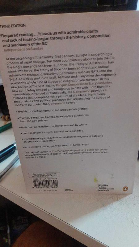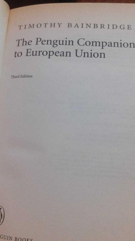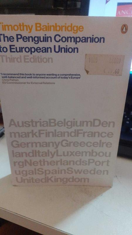 Penguin Companion To The European Union, tımothy baınbrıdge tarafından kaleme alınmıştır. Kitap 2003 yılında penguın tarafından [ingiltere] yayınlanmıştır. Satışta olan kitap, yayınevinin 4. baskısıdır. 570 sayfadır. Penguin Companion To The European Union adlı eser İngilizce dilindedir.