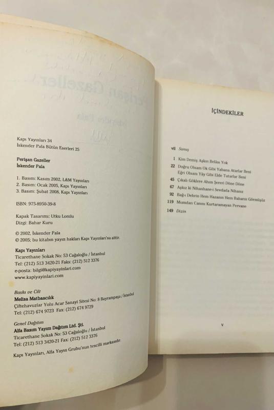 Perişan Gazeller (İmzalı), İskender Pala tarafından kaleme alınmıştır. Kitap 2008 yılında Kapı Yayınları tarafından yayınlanmıştır. 154 sayfadır. Perişan Gazeller (İmzalı) adlı eser Türkçe dilindedir.