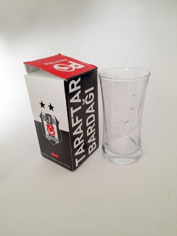Petrol ofisi BJK BEŞİKTAŞ cam bardak başlıklı antika/koleksiyon objesi Türkiye menşe’lidir. 2000 ve sonrası dönemine aittir.