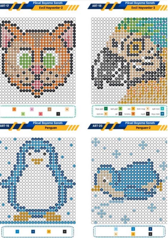 Piksel Boyama Sanatı Kitabı (Herkes İçin) Türkiye’de İLK Defa 3 Boyutlu Piksel Boyama Sanatı Kitabı Pixel ART Coloring Book Seçilmiş 60 Figürün Tam Sayfa Kodlarla boyanmasından oluşmaktadır. Dijital baskılı rengarenktir. Birinci kalite gramajlı kağıda baskı yapılmıştır. (Boyamalardan arka tarafa geçmesini önlemek için) Cevaplar kitabın sonunda 4 tanesi bir sayfaya yerleştirilmiş olarak verilmiştir. Yeni Nesil boyamalardır. Piyasalardaki kare piksel boyama değil 3 boyutlu oval (yuvarlak) piksel boyamalardır. Önce resminizi boyuyorsunuz sonra cevaplardan kontrol ediyorsunuz. Renkler net bir şekilde verilmiştir. Ancak eğer boyanız o renk için yoksa en yakın rengi kullanabilirsiniz. 7’den 77’ye herkes içindir. Kolay kullanım için spiralli olarak hazırlanmıştır. Piksel Kodlamadır. Pixel Coding Nedir? Pixel Coding her yaştan sanatseverin ve kodseverin Pixel Art oluşturmasını sağlayan bir kodlama eğitimi ve piksel sanatı uygulamasıdır. Pixel Coding ile PixelArt ve hareketli pixel animasyonlar oluşturabilirsiniz. Piksel Boyama Sanatı Kitabı (Herkes İçin) Görsel algı gelişimini destekler. El - göz koordinasyonunu geliştirir. Odaklanma süresi ve dikkatini geliştirir. Çocuklar için reklamsız ve güvenilir içeriktir. Cilt Özellikleri : Sarff 450Mic. A4 Şeffaf Kapak (Sert Kapak) Şeffaf kapağın altında kitabın renkli kapağı yer almaktadır. Sert Kapak (Dış Kapak) Özellikleri: 450 Micron Buzlu Şeffaf Kapak (Sert Kapak) Kraft Cilt (Arka Kapak) Özellikleri: Kraft Kağıt ham maddesi odun selülozudür. Suya dayanıklıdır. Kopma mukavemetlidir. Neme dayanıklıdır. Helezon Özellikleri: Sarff 14 mm Pvc Helezon Spiral Şeffaf (4:1) flament çapı 1,8 dır.