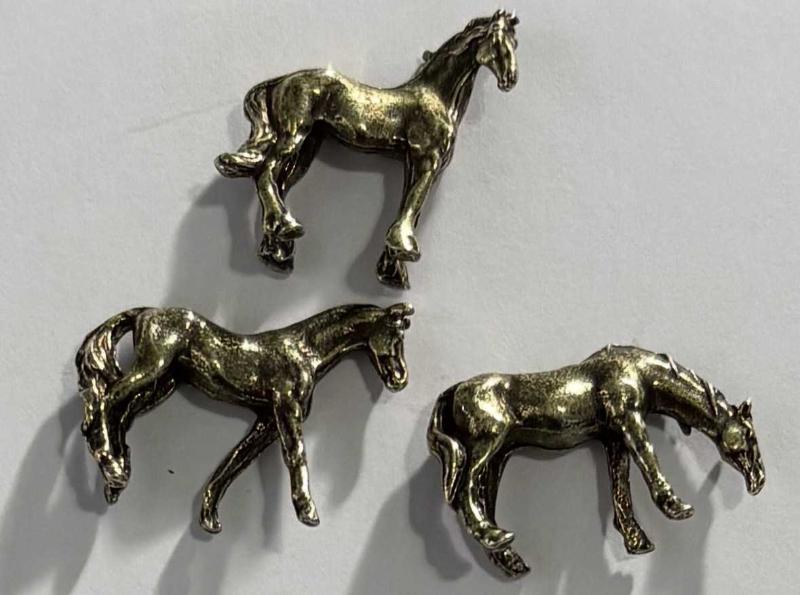 Detaylı işçiliğe sahip, antik görünümlü pirinç at figürlerinden oluşan 3’lü settir. Her biri farklı duruşta tasarlanmıştır. Doğal patinası sayesinde vintage karakter taşır. • Adet: 3 parça (farklı pozlarda) • Malzeme: Pirinç • Tahmini Ölçü (her biri): 2-3 cm uzunluk / 1,5-2cm yükseklik • Kullanım Alanı: Masa üstü dekor, koleksiyon, ofis süsü, hediyelik, tasarım projeleri Küçük boyutlu ama ağırlıklı ve kaliteli bir settir. Koleksiyonluk veya dekoratif amaçlı değerlendirilebilir.