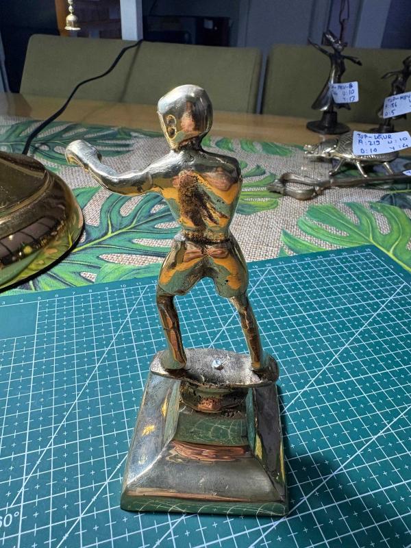 Pirinç Boksör Figürlü Dekoratif Obje başlıklı antika/koleksiyon objesi Türkiye menşe’lidir. Objenin ait olduğu dönem bilinmeketedir.