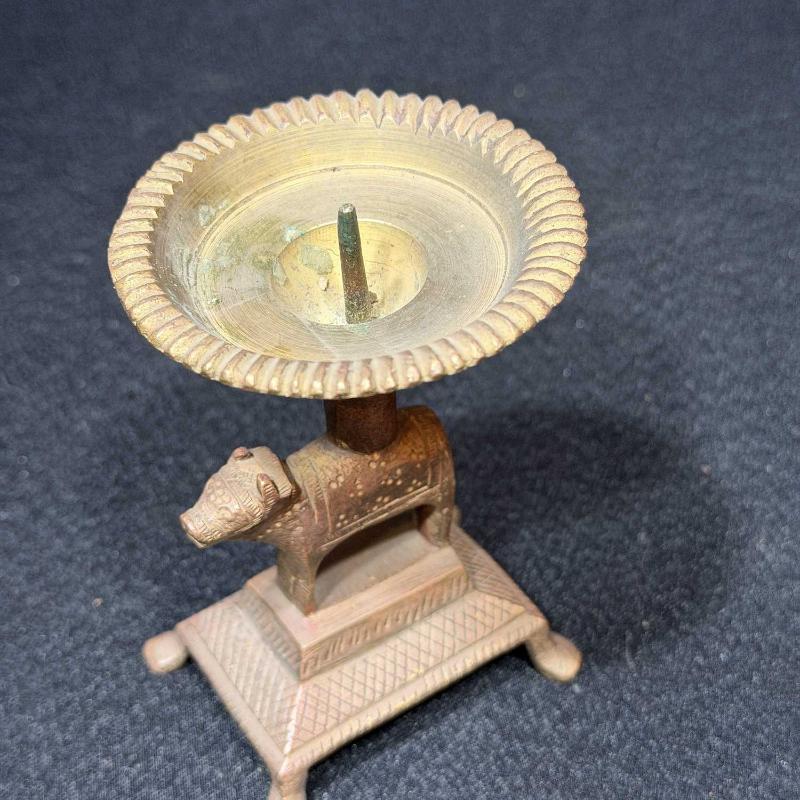 Pirinç Nandi Figürlü Mumluk – Hindistan, Modern Dönem başlıklı antika/koleksiyon objesinin menşei belirtilmemiştir. Objenin ait olduğu dönem bilinmeketedir.