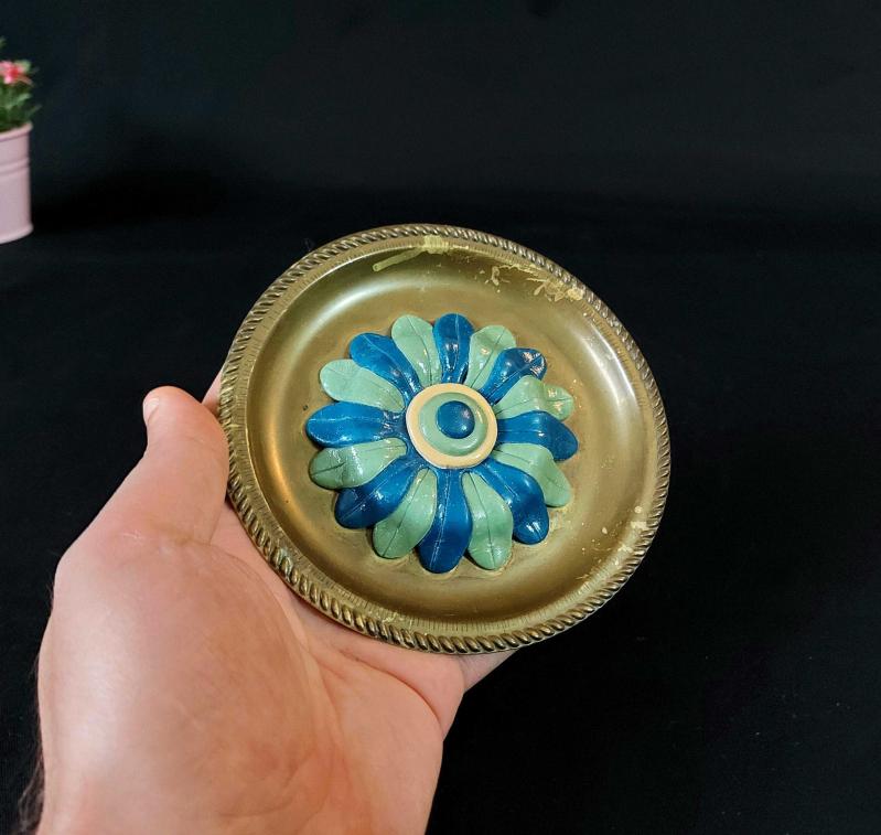 Eski Metal nazarlık Çiçek Desenli - kabartmalı nazarlık Eski Temiz Sağlam Ölçü Sonda - İade Yoktur