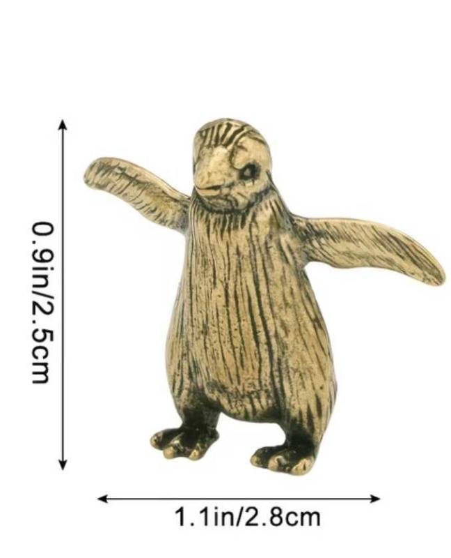Sevimli duruşu ve açık kolları ile dikkat çeken pirinç penguen figürü. Detaylı yüz ve gövde işçiliği sayesinde küçük boyutuna rağmen dekorasyonda hoş bir tamamlayıcı parçadır. Masaüstü, raf, kitaplık ve vitrin dekorasyonu için uygundur. Koleksiyonluk ya da hediye olarak tercih edilebilir. ✨ Ürün Özellikleri: • Pirinç penguen figürü • Detaylı işçilik • Sağlam ve dekoratif tasarım • Mini boy 📏 Ölçüler (yaklaşık): • Yükseklik: 2,5 cm • Genişlik: 2,8 cm
