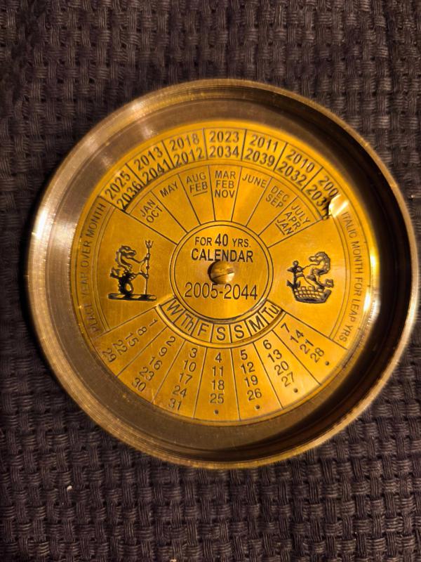 Pirinç ama bronza daha yakın patinesi çok güzel. Pusula aktif sağlam çalışıyor. Diğer kapakta sonsuz takvim. Güncel Mağaza satış fiyatı 3 bin tl üzeridir. Fırsat fiyat.
