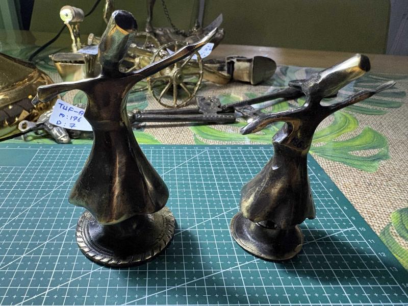Pirinç Semazen Figürlü Dekoratif Obje (2’li Set) başlıklı antika/koleksiyon objesi Türkiye menşe’lidir. Objenin ait olduğu dönem bilinmeketedir.