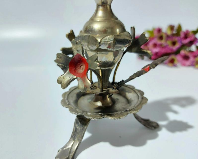 ÇİÇEKLİ Nadir tasarım - Gümüş renkli BÜYÜK BOY Eskilerden Sürmedan Pirinç Sürmedan - Biblo - Sürme Şişesi Ölçü Sonda - İade Yoktur Eski Temiz Sağlam
