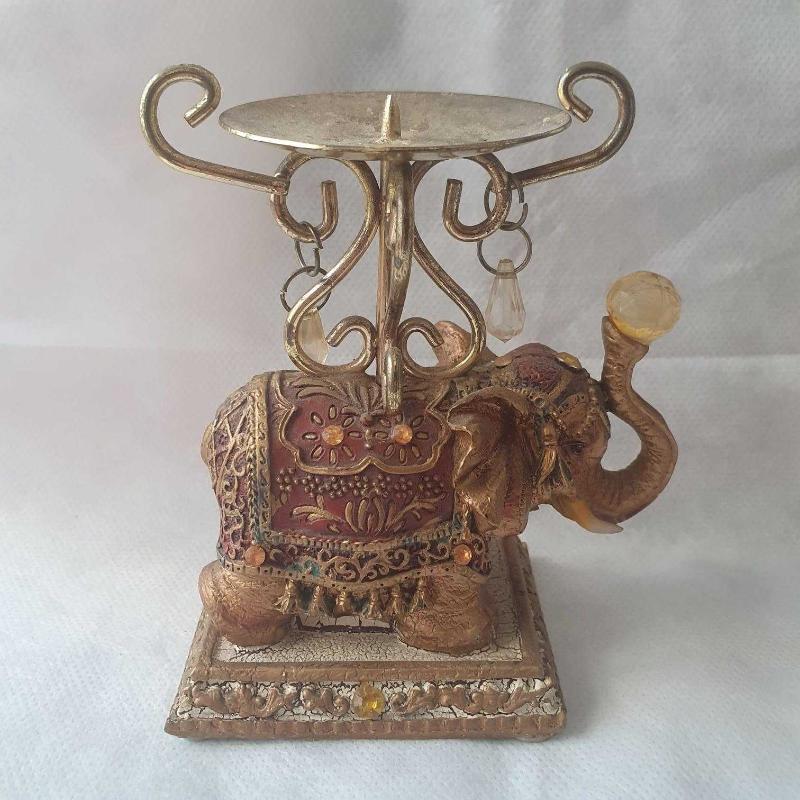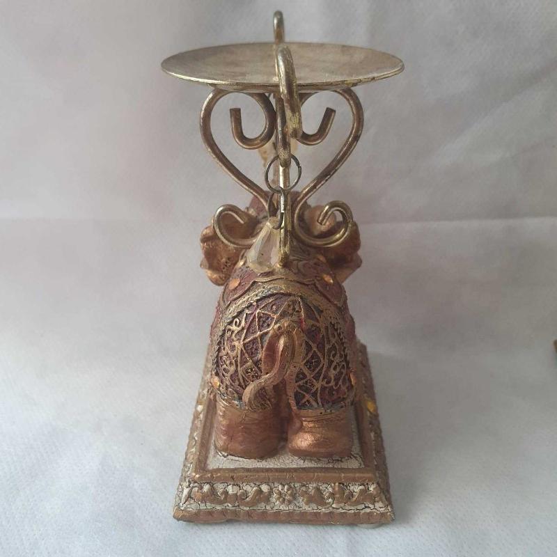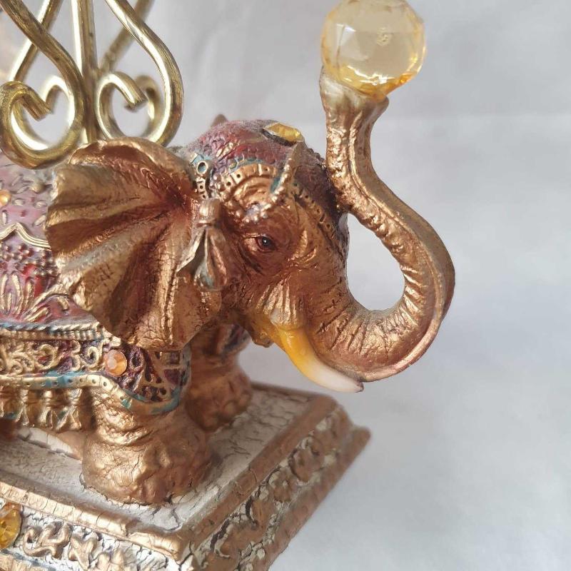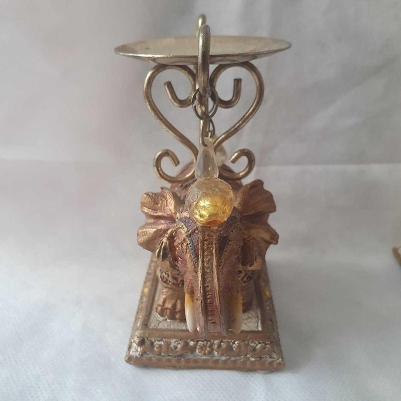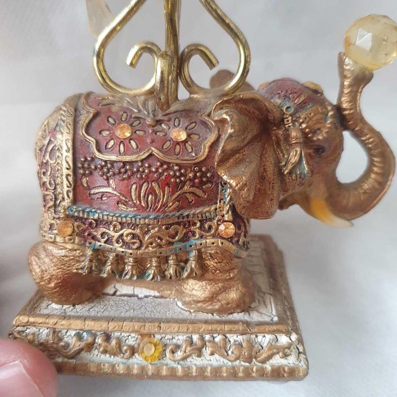 Pirinç, Taşlı Fil Figürlü Tütsü, Mumluk 10x13 cm