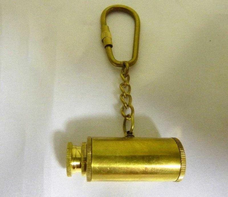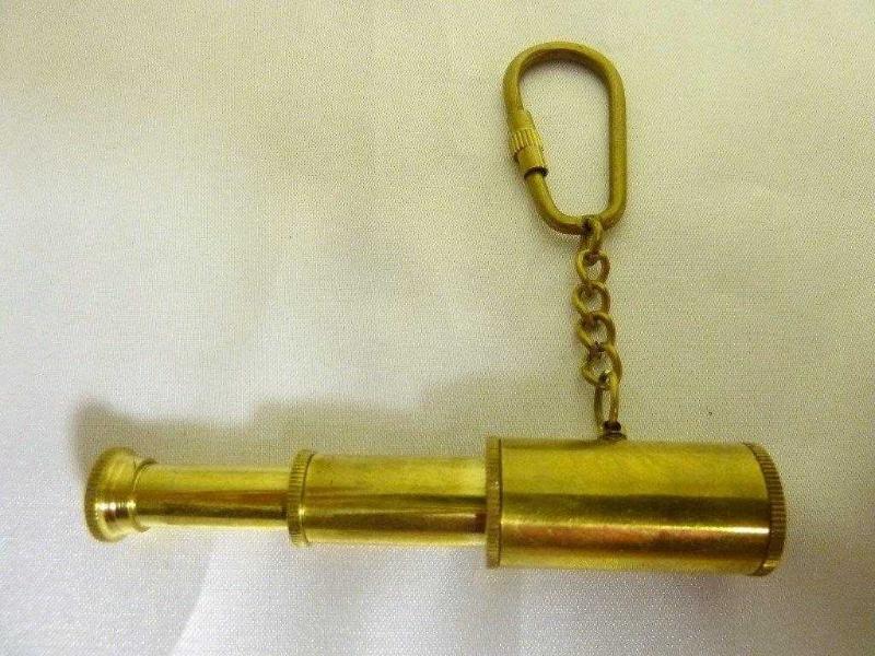 Pirinç gemici dürbünü anahtarlık. Boy açık. 8cm. başlıklı antika/koleksiyon objesinin menşei belirtilmemiştir. Objenin ait olduğu dönem bilinmeketedir.