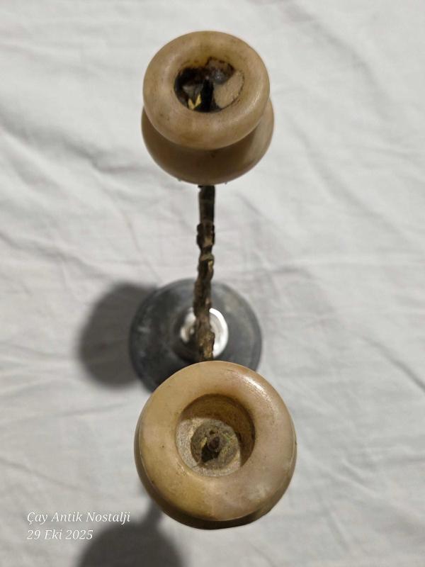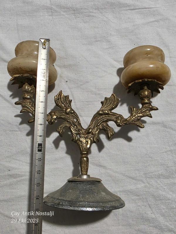 Pirinç ve mermer ikili şamdan 15 cm boyunda, bir ay önce kitantik’te satışa sunulmuştur.