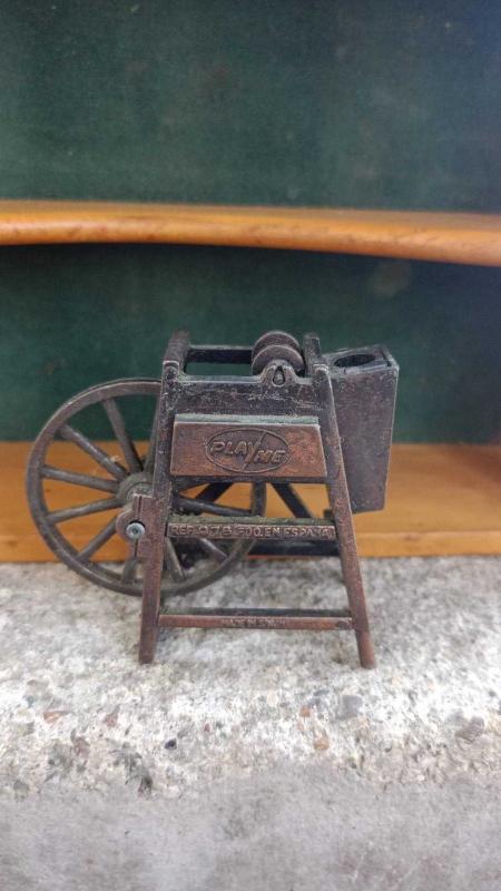 Marka: PlayMe Model Numarası: 978 Üretim Yeri: İspanya Malzeme: Döküm metal (die-cast) Kategori: Minyatür antika tarım/makine modeli Koleksiyon Serisi: Genellikle 19. yüzyıl temalı el aletleri, makine replikaları Bu model özel olarak el kranklı bir değirmen makinesi, eski tip vinç, veya yük kaldırma/çekme tertibatı olarak tasarlanmış gibi durmaktadır. Bazı kaynaklarda "old threshing machine" (eski harman makinesi) veya "winch mechanism" (vinc mekanizması) olarak geçer.