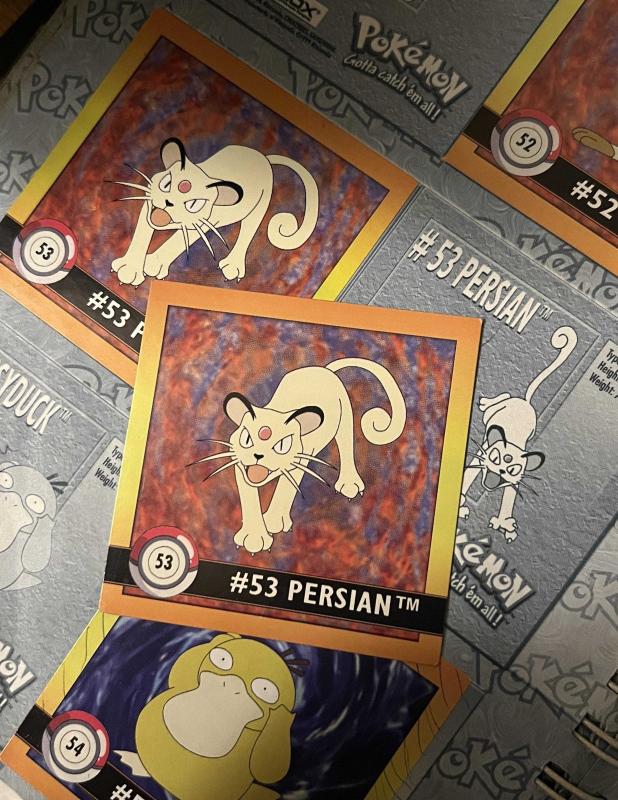 Pokemon 1999 Super Collection Sticker Album için (son fotoğraftaki) kullanılmamış Persian pokemonu çıkartması.