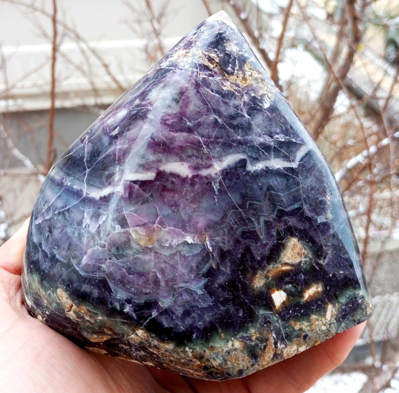 Gökkuşağı Florit Doğal Kütle Ağırlığı : 1855 Gr Ölçüleri : 13x12x8 cm Polisajlıdır Menşei : Kırşehir/ Türkiye