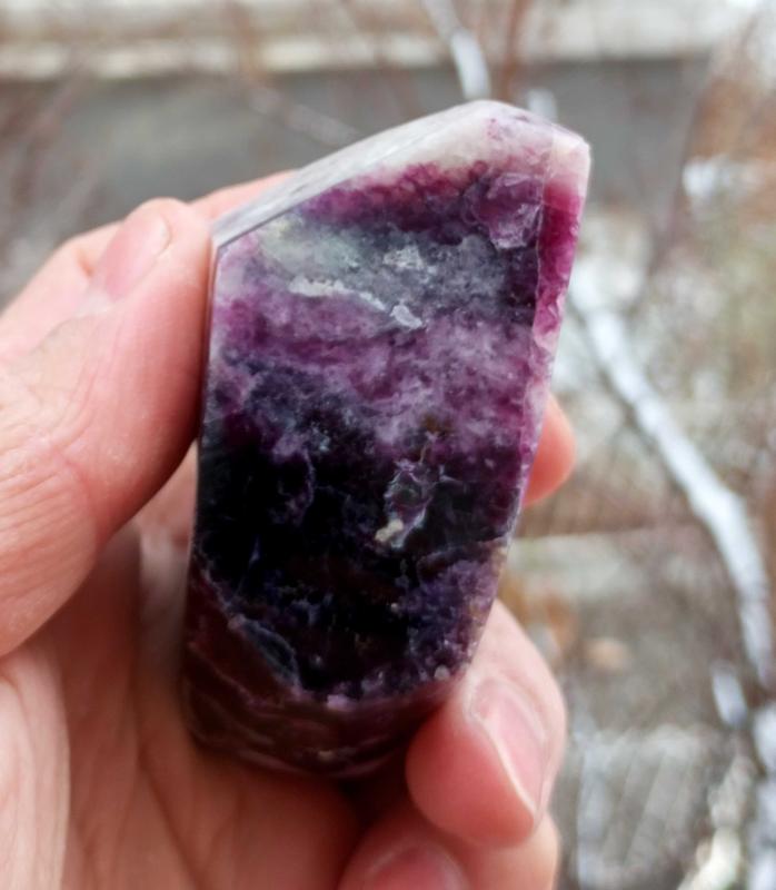 Mor Florit Doğal Kütle Ağırlığı : 210 Gr Ölçüleri : 8x5x3 cm Polisajlıdır Menşei : Kırşehir/ Türkiye