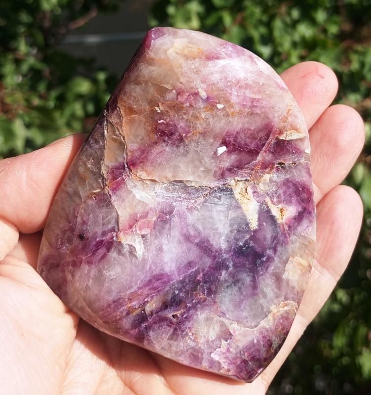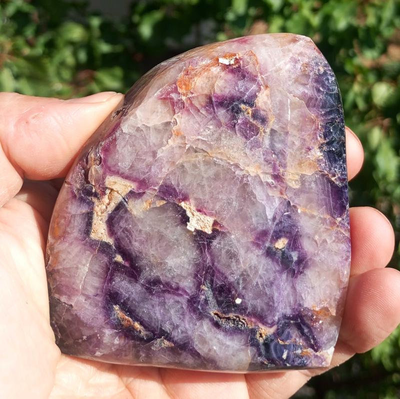 Mor Florit Doğal Kütle Ağırlığı : 330 Gr Ölçüleri : 8x7x3 cm Polisajlıdır Menşei : Kırşehir/ Türkiye