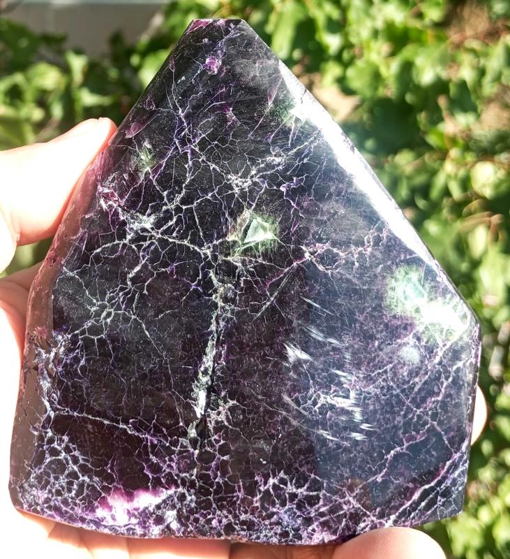 Mor Florit Doğal Kütle Ağırlığı : 415 Gr Ölçüleri : 11x9x2 cm Polisajlıdır Menşei : Kırşehir/ Türkiye