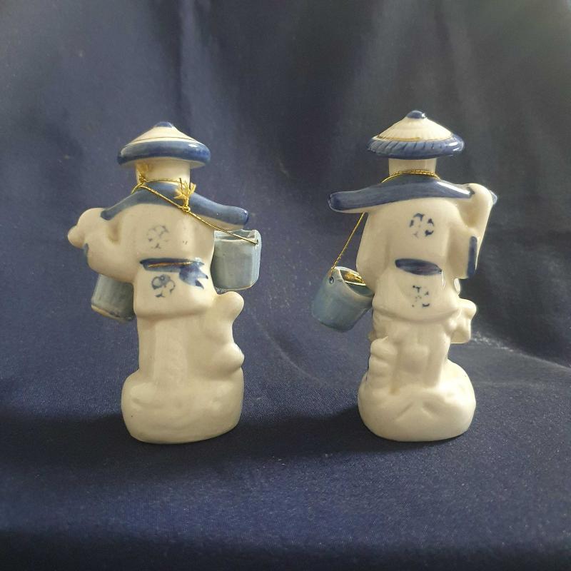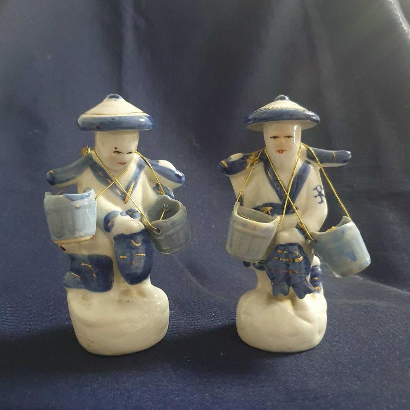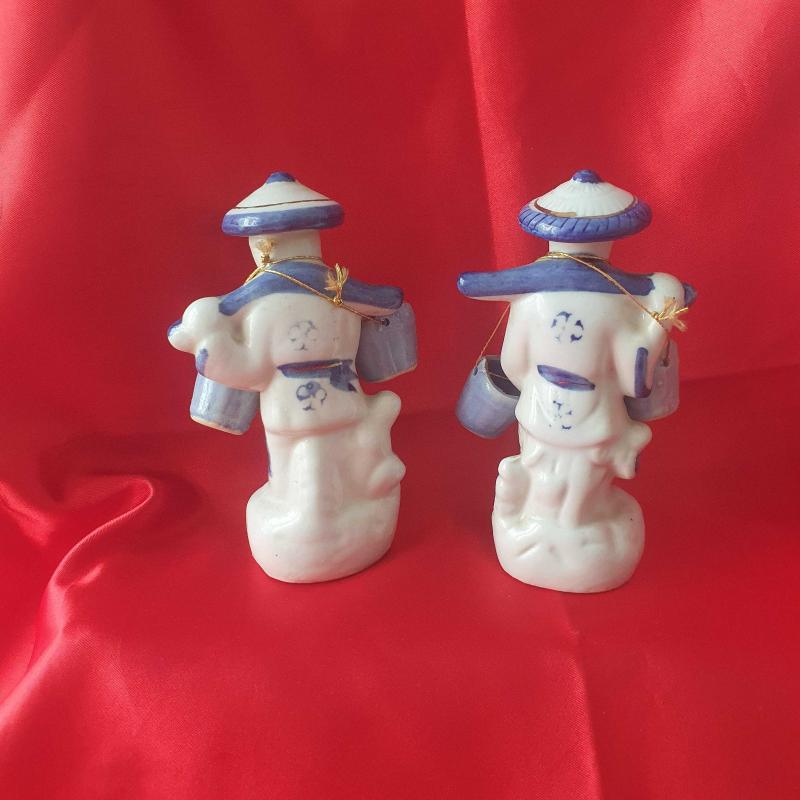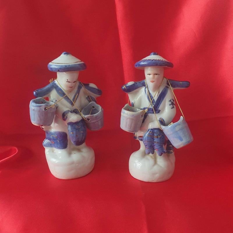 Porselen Çinli Balık Satıcısı İkili Biblo Koleksiyonluk 8x15cm