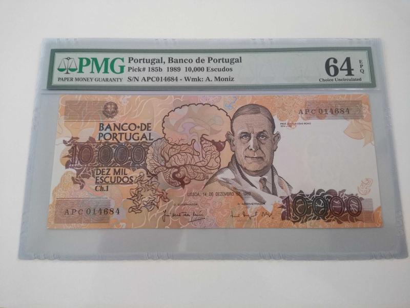 Portekiz 10000 esküdo 1989 pmg 64 çil. Nadir bir paradır. Kolay Kolay çıkmaz.