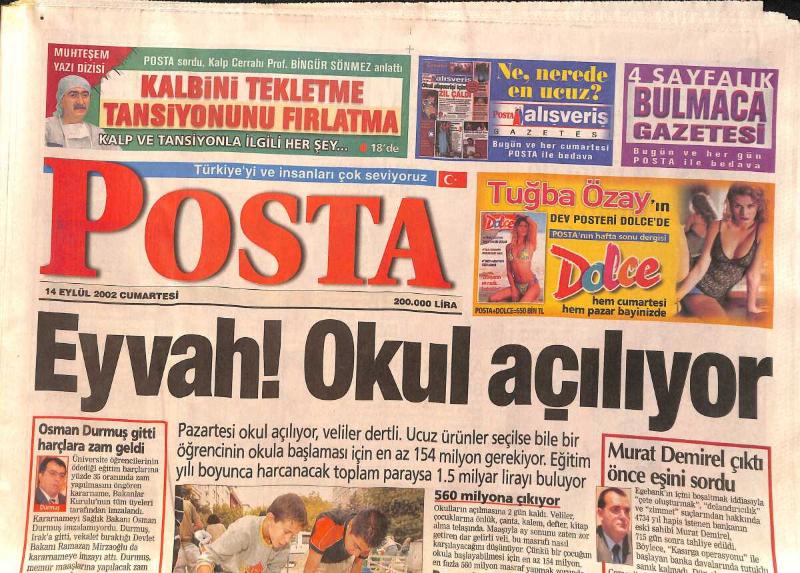 Posta Gazetesi 14 Eylül 2002 - ABD En Geç Ocak'ta Irak'a Saldıracak - Terim : Havamızı Bulmaya Başladık GZ157242 başlıklı ürün, Efemera, Müzik, Sinema > Belge ve Evraklar > Gazete kategorisi altında İkinci El olarak satılmaktadır.