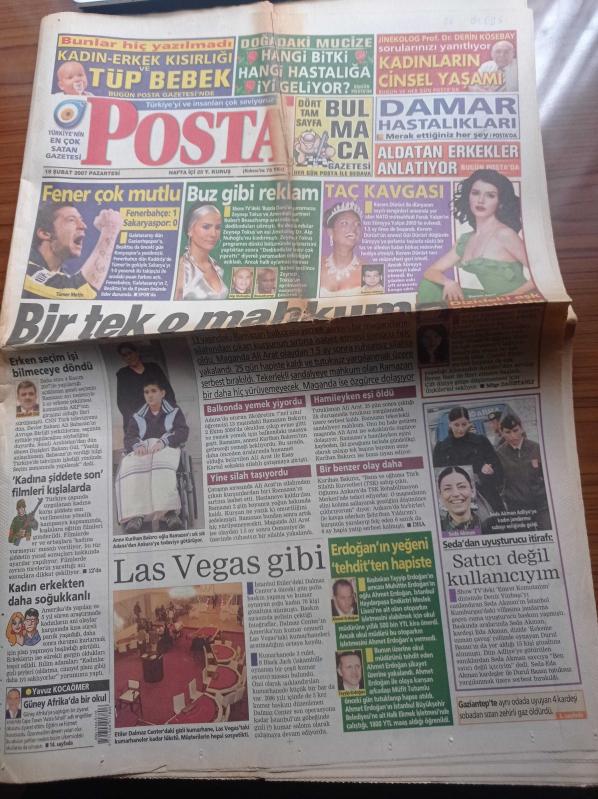 Posta Gazetesi - 19 Şubat 2007 - Fenerbahçe Çok Mutlu - Tümer Metin - Oyuncu Seda Akman'dan Uyuşturucu İtirafı - Erken Seçim İşi Bilmeceye Döndü - Abdullah Gül - Beren Saat - Recep Tayyip Erdoğan'ın Yeğeni Ahmet Erdoğan Tehditten Hapiste - Zeynep Tokuş - Kadına Şiddete Son Filmleri kışlalarda adlı eser Türkçe dilindedir.