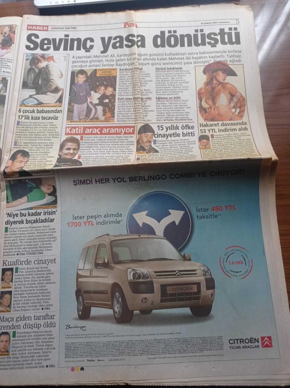 Sayfa Boyutu: 38*56cm Sayfa Sayısı:26 Posta Gazetesi Yıpranma, sararmalar, kupon kesiği ve yırtılmalar zamana bağlı olarak görülebilir